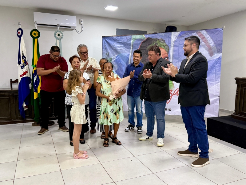 Encerrando a solenidade, a primeira homenagem simbólica do prêmio foi entregue à mãe da educadora, Dona Silvina Guimarães, como gesto de gratidão do município pela trajetória da filha e sua contribuição à educação local.