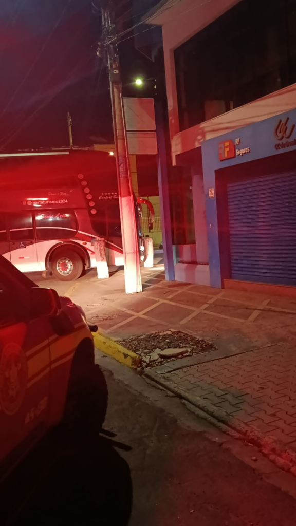 Já por volta das 21h, uma equipe foi acionada para atender uma ocorrência envolvendo um ônibus de turismo que ficou preso em uma estrutura de contenção na rotatória das ruas 21 de Setembro com Porto Carreiro. Apesar do susto e do transtorno no trânsito, o condutor não sofreu ferimentos e não precisou de atendimento médico.