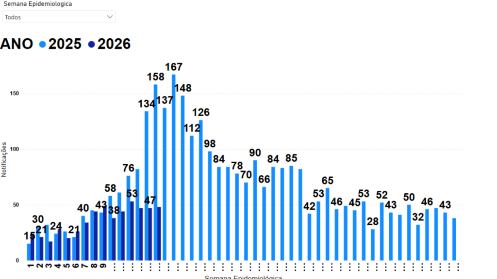 Levantamento do Centro de Informações Estratégicas em Vigilância em Saúde de Campo Grande aponta que, apesar de os números atuais não ultrapassarem os registrados no mesmo período de 2025, já foram contabilizados 548 casos de síndromes respiratórias apenas neste ano na Capital.